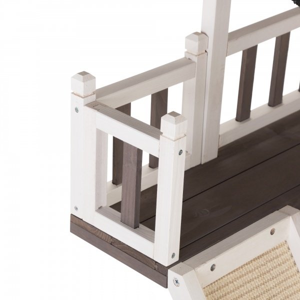 Home > 2-Tier Outdoor Wooden Dog House, Weatherproof Dog Hutch with A Large Balcony, Sisal Scratching Pad Ladder, Gift for Pets, Gray and White