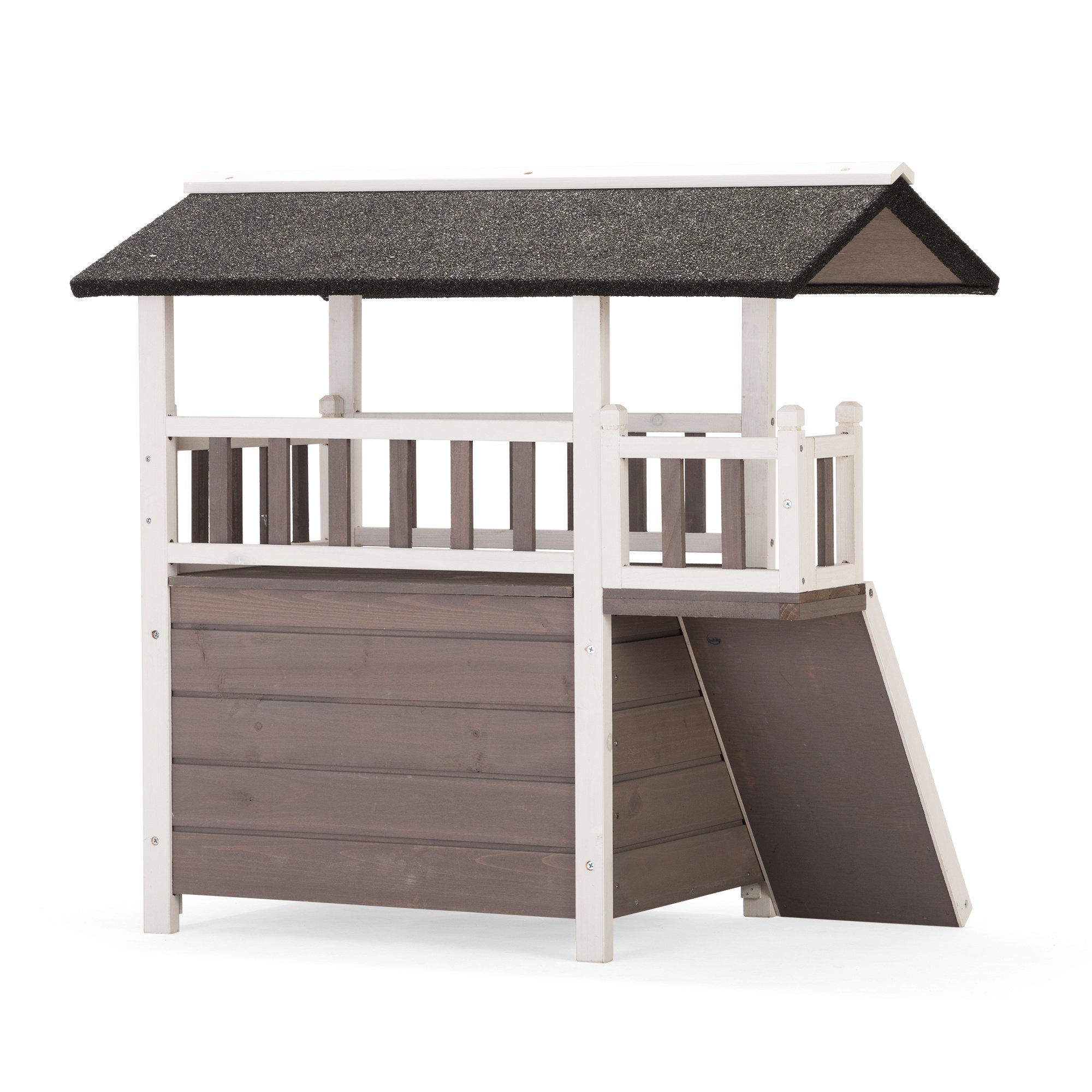 [Premium Material]: With fir woodto avoid delaminating, this house is more durableand prevents pets from wild animals.The asphalt roof is suitable for both indoor and outdoor.