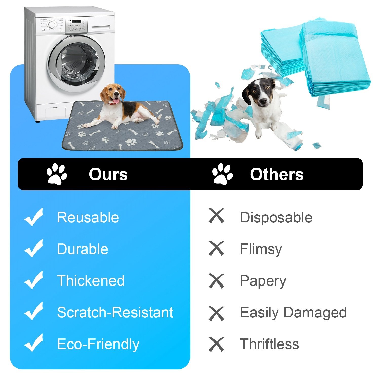 *Reusable & Washable Pads*:Compared to the disposable pee pad,our reusable pad is eco-friendly and reduce the waste of buying endless single-use pads. After repeatedly washing,this machine washable pad will still like brand new,without ripping,fraying,or losing softness,efficiently help you save money.