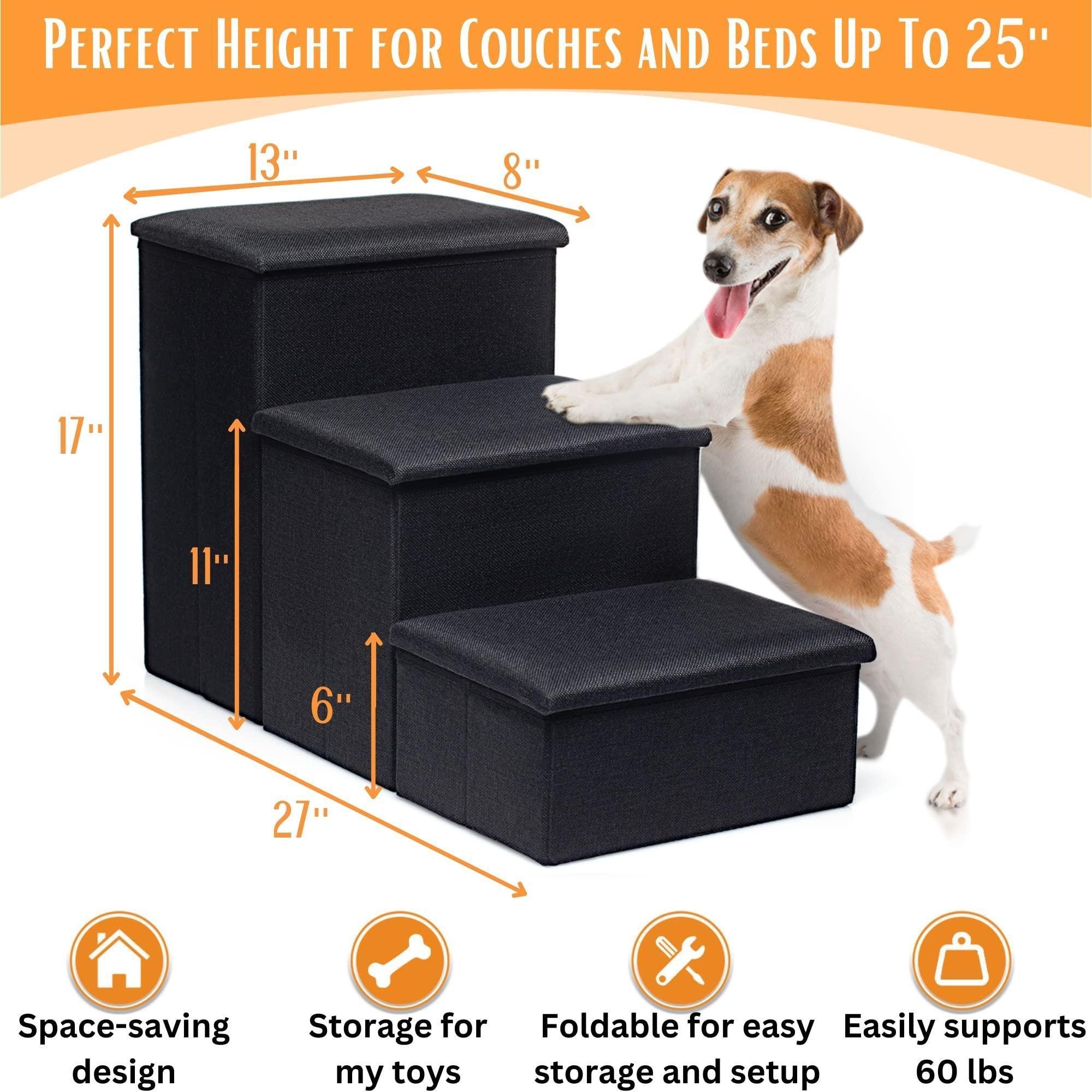 Black Dog Stairs for High Beds or Couch Foldable Dog Steps With Storage for Small Dogs Medium Dogs Puppy Stairs