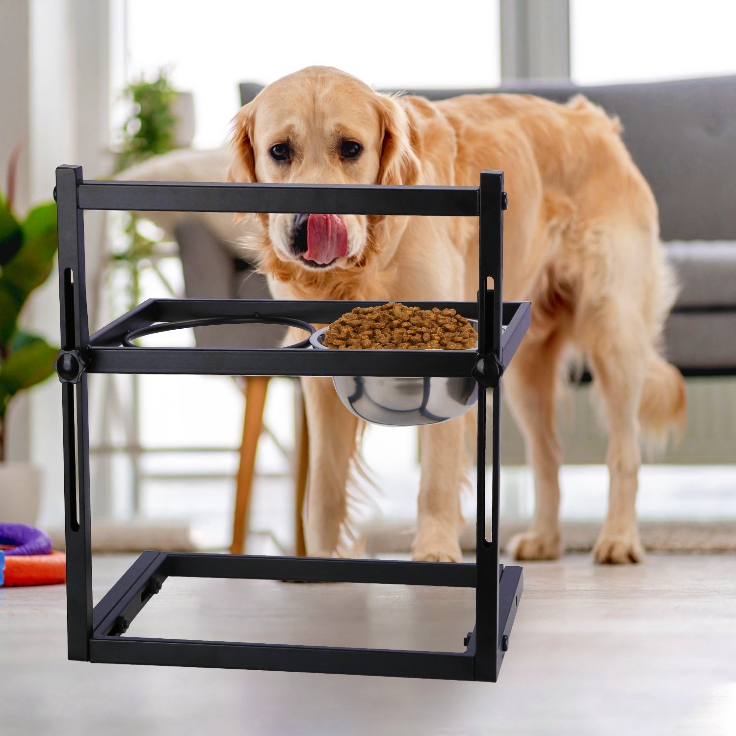 4.Quickly assemble this raised dog bowl in about 5 minutes.