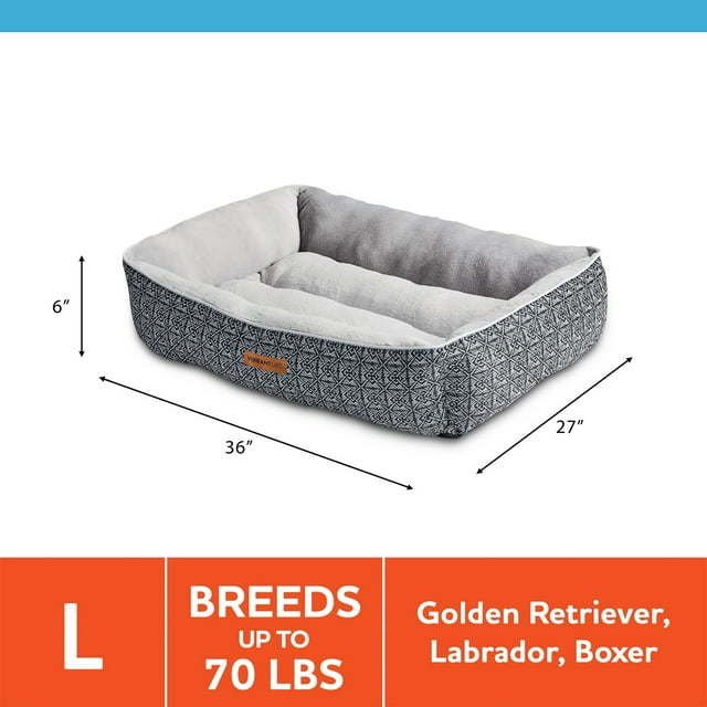 Ideal for breeds up to 90 lbs including boxers, labradors, and golden retrievers Machine washable Bolstered for comfort and support Soft and cozy sleep area Assembled Product Weight