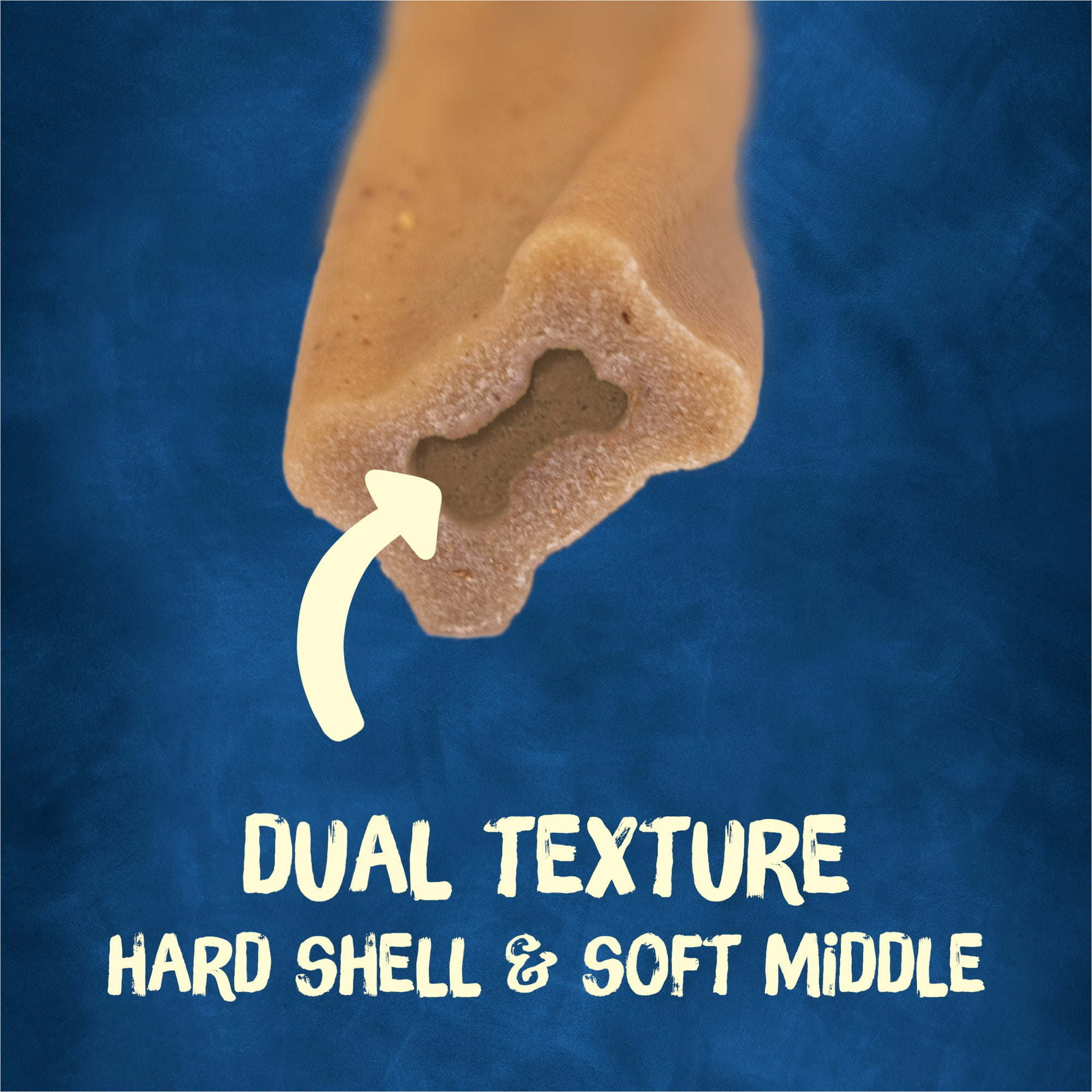 Dual-textured dog bones for medium dogs with a hard shell and tasty middle.