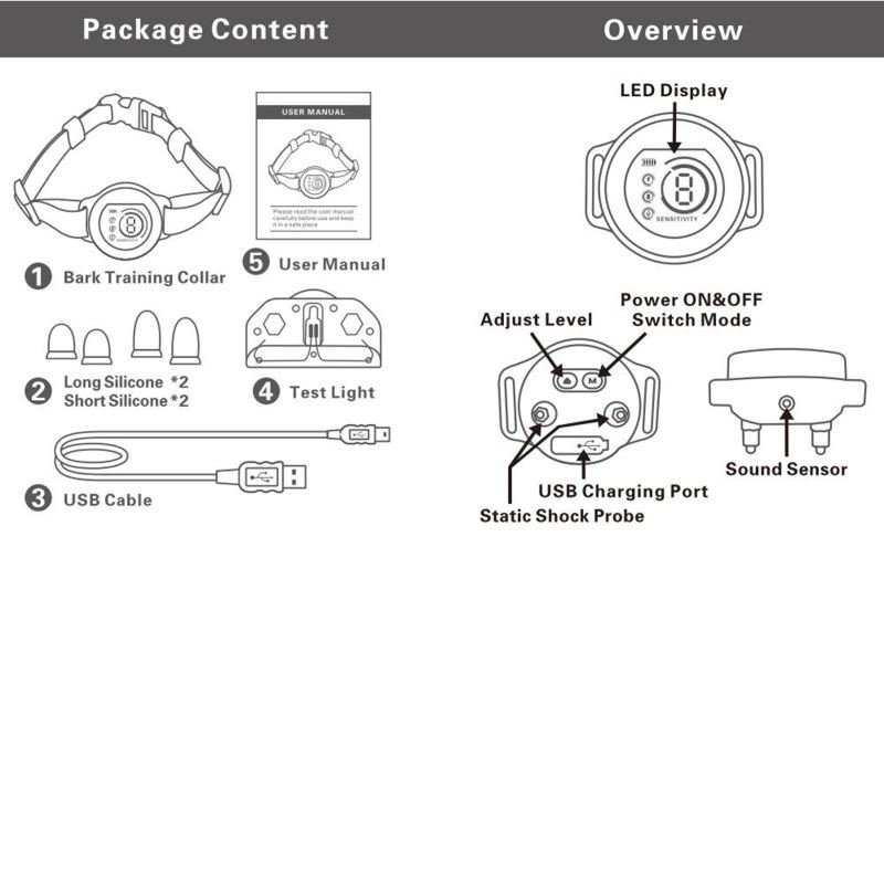 1.Intelligent dog bark recognition chip (sound recognition is more accurate), unique effective warning level setting, more humane training.