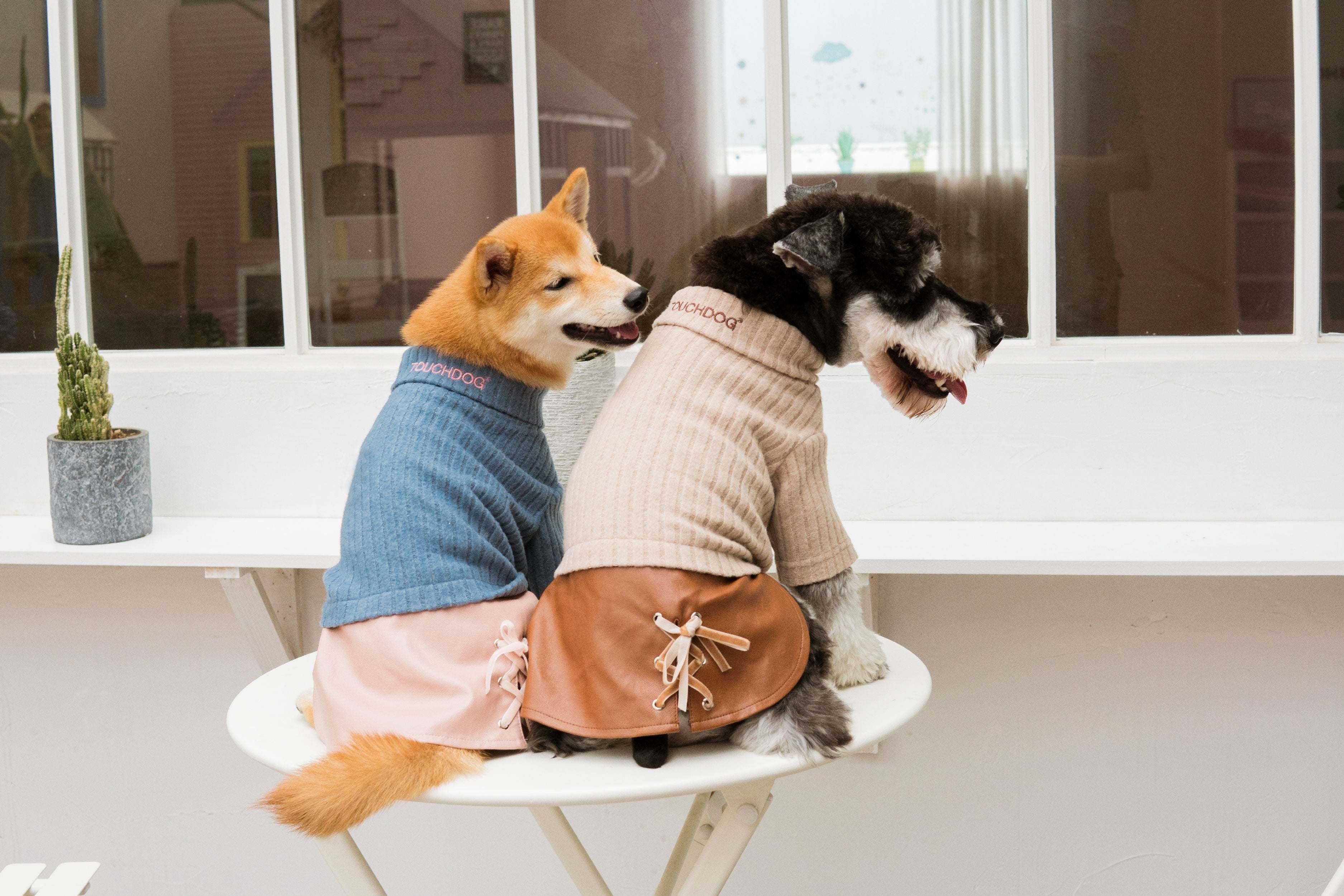 1.This One-Piece Features a Modest Designer Dog Dress and Knitted Sweater